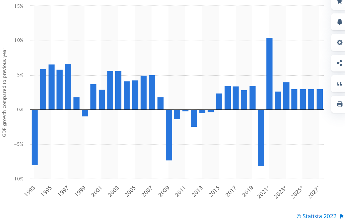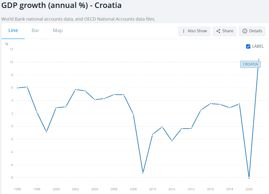 Za ocjenjivanje životnog standarda obično se primjenjuje BDP po glavi stanovnika (vrijednost finalnih dobara i usluga proizvedenih u zemlji tijekom godine dana te pojednostavljeno predstavlja snagu odnosno veličinu pojedinog gospodarstva; njegova veličina u relaciji s brojem stanovnika govori o razini razvijenosti pojedine zemlje). Prije 20 godina je BDP po stanovniku (u EUR) u Hrvatskoj bio podjednak današnjem, uzevši u obzir inflaciju i poskupljenja kojima novac gubi vrijednost pa tako 14.718 € (koliko je iznosio BDP po stanovniku u 2021.) nema istu vrijednost danas i prije 10 ili 20 godina.