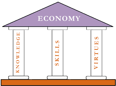 In the knowledge-based economy and education the missing foundations are the virtues and skills - they should form the basis, not only additional "bricks or tools" to build our success.