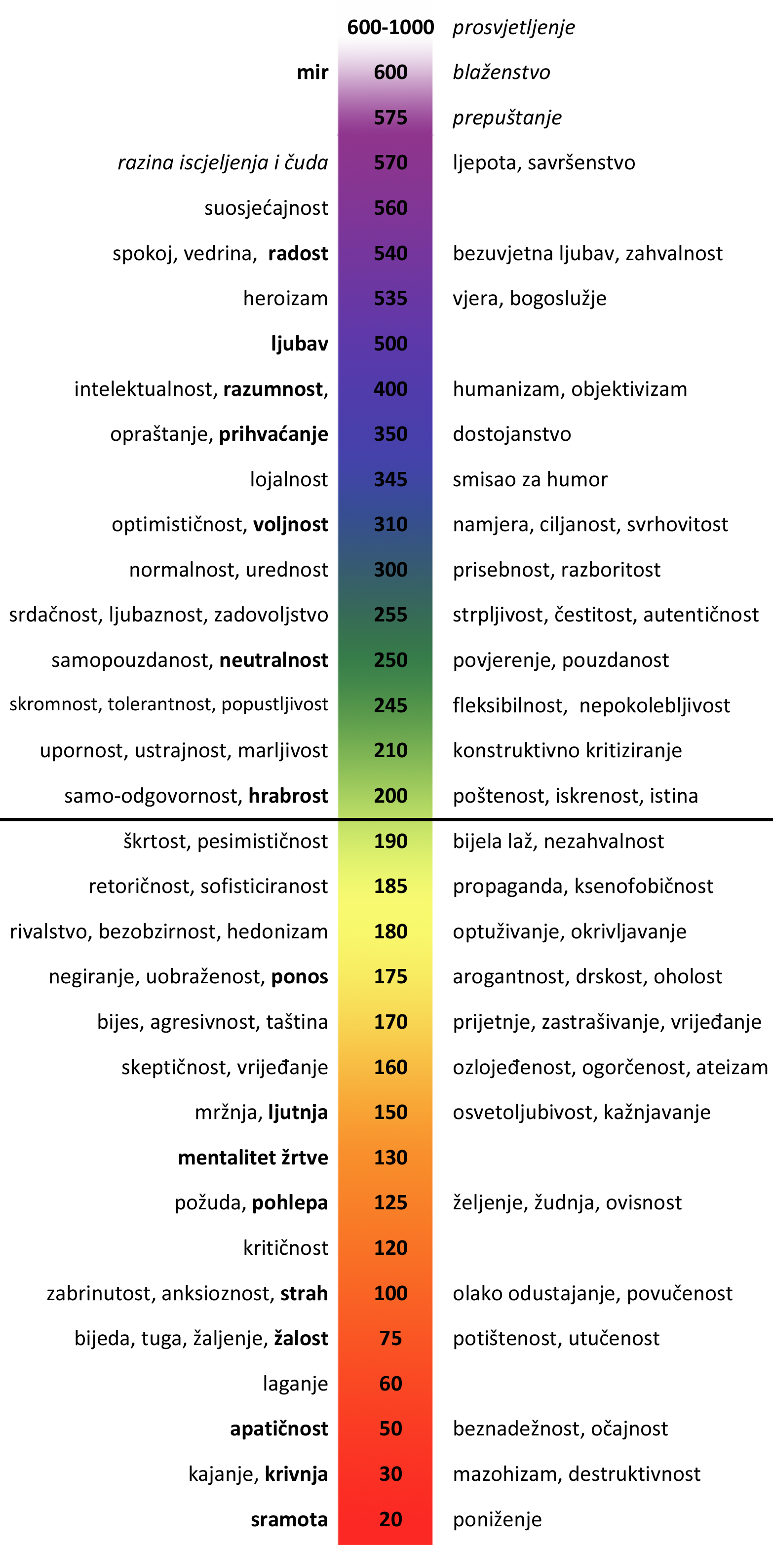 Za to također preporučujemo gledanje videopriloga Vrlinologija programa na temu skale svijesti: Skala svijesti, a po mogućnosti i prethodni, uvodni videoprilog na temu svijesti (modul o svijesti) |